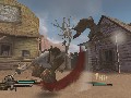 Our hero, the incredibly talented Gojiro Kiryuu, is poking around the Old West in search of his brother, Raddo. The game kicks off with a band of curious gunmen immediately squaring off with Kiryuu, only to meet with his blade faster than you can say "draw!" Shock and awe is spread across the sleepy western town, and next thing you know, hordes of enemies with the cheesiest damned things to say are popping up all over the place, itching to promote our hero to corpsedom. In short: Awesome. At the very least, things look to be about on par with the above-average experience of Gungrave O.D....