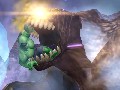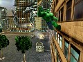 Your only real option for defense, aside from overwhelming offensive power, is Hulk’s super-leaping power. Hulk can leap high enough to scale single story buildings with a single bound, and by charging his leaps (by holding down the A button) you can soar up above skyscrapers. There are some buildings too tall to simply leap to the top of, and for this you’re best off grabbing the side of the building and climbing up. If you need to get there in a hurry, you can hold down the R button and simply dash to the top, but keeping control of Hulk while he’s running can be different. He’s usually a bit of a slow bruiser, but once he’s running he picks up some gigantic momentum.