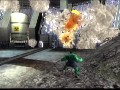 One of the things that really impressed me about Ultimate Destruction, in a way I was totally unprepared for, was the quality of the storyline and the way the game built up atmosphere. The story is a very traditional comic-book Hulk tale, which begins with Bruce Banner working in a secret hideout in the woods to try and remedy his problem. He’s unexpectedly attacked by the military and has to seek refuge with Doc Samson, another researcher who’s investigating ways to cure or control Bruce’s transformations into the Hulk. Doc Samson gives Bruce a special helmet that lets him transform at will by spikign the anger centers of his brain, and then sends Bruce out on a mission to collect the resources to try and make a curative treatment possible. In the meantime, the authorities – lead by a man named Emil Blonsky - are still seeking the Hulk for their own purposes.