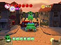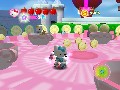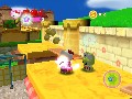 Caught somewhere in the lines between the more recent Legend of Zelda games and Super Mario Sunshine, Hello Kitty Roller Rescue puts you in the shoes of Sanrio's most popular anthropomorphic feline, Hello Kitty. The planet is under attack by the forces of the megalomaniacal Block-O, who is sending his troops to Sanriotown in order to turn Earth and everything on it into cubes. No Earth-shattering kaboom, no enslaving of mankind, not even a plain ol' dictatorship. He simply wants to give the planet a makeover. You have to give him credit though – to this end, he's oddly enthusiastic, using tanks, trains, and even Voltron-esque giant robots to achieve his goal.