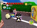 From there on, Kitty's left to run around the level collecting coins, beating up Blockheads with her wand, saving other Sanrio characters, and checking mailboxes to find out ways to win new pretty outfits to wear. You see, Hello Kitty is marketed towards girls, and girls want nothing better than to play dress up with their heroines, right? Right? Yeah, I think it's a crock too. Either way, you get new sporty dresses for Kitty to wear, as well as a few changes to her bonking stick, and all it takes to change is a quick trip into the closet. It's purely cosmetic, however, which is a tad irritating with the weapons, as one would expect even the slightest upgrade to take place over the course of the game.