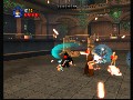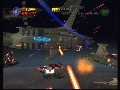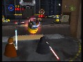 The control set could not be simpler for Lego Star Wars. The X button is for attacks, which take on that pre-programmed combo form when the button is pressed in succession. The A button is for jumping and can be quickly double-tapped for sky-high leaps. Mid-air attacks can be performed straight down either in a stabbing fashion or at an angle in a sweeping attack. Holding in X will hold a defensive stance, while tapping X in accordance to blaster fire will block the beams right back at your enemy. The Force is controlled via the B button and the thumbstick; holding B will start the Force process, and the stick can then be used to move the hovering object around the map. Holding in B will also unleash a Force Push on certain enemies. The few vehicles in the game are as simple as characters to control: the left stick moves the craft, and the X button fires a weapon.