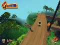 Each character brings a unique skill to the table, the better with which to tackle the game's 11 separate gameplay mechanics. Chicken Little wields his yo-yo as a weapon and acquires a slingshot at a later point, while Fish-Out-of-Water's ammunition of choice is bursts of water. Runt of the Litter is always seen in a vehicle or spaceship, so he can drive fire trucks through town and fly alien crafts through space in some of the F-Zero-esque missions. Last, but not least, Abby's key move is an evasive gliding maneuver, but once she picks up an alien walker exoskeleton – which shoots laser beams – she's a force to be reckoned with. Gadgets such as bottle rocket jet packs and hover boards await the gamer in later maps, which include spiraling asteroids and corn field mazes.