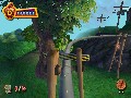 Chicken Little follows the movie storyline pretty closely and incorporates 20 minutes of film clips, but it also includes 15 minutes of additional cut scenes that Avalanche put together themselves, and you can't tell the difference between the two. The game will consist of approximately 20 levels, with half of them set in Oakey Oaks and the other half in outer space. You start off each level playing as Chicken Little, Abby Mallard, Fish-Out-of-Water or Runt of the Litter. You don't actually get to select the playable character, but s/he is the best candidate for the task at hand.