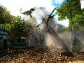 Beyond the difficulty, Just Cause ignores physics; it doesn't just stretch them but flat out ignores them. You can skydive from hundreds of feet up and open your parachute at the last moment without a scratch, cars react like they are made of air, and explosions sometimes send things flying, while not even disturbing a leaf at other times. While this is to preserve the action-movie atmosphere, it also means that a lot of amazing stunts come off as boring because there doesn't seem to be any sense of danger. Combined with the incredible ease of combat, Just Cause somehow manages to make a tedious activity out of jumping off a cliff and parachuting into enemy territory.