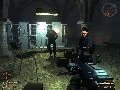 The two lead characters progress through the game side by side and help each other out, much like Gordon and Alex do in Half-Life 2. In the level I played, Fletcher and Hawke must fight their way through a maze of dark corridors toward the roof of the building, where Hawke's airplane is waiting. (My understanding is that you'll be able to fly the plane around Europe and the Middle East later in the game, but the preview build did not include this capability). To make the job easier, they are loaded out with the usual arsenal of weaponry: a knife, a pistol, an assault rifle, an SMG, and several grenades.