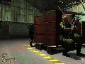 A lot of work has obviously gone into the in-game physics. While I was somewhat disheartened to see the all-too-familiar drab hallways lined with crates, boxes and bottles, I was nevertheless pleased to be able to interact with the boxes and bottles by shooting them around the room. Boxes fly about convincingly, but the bottles need some work. They don't shatter realistically and they don't make a sound when hit. It's also fun to shoot the hanging lamps and watch them sway and cause shadows to dance about the room, but it seems odd that shooting the bulb doesn't break it.