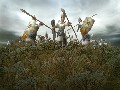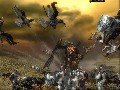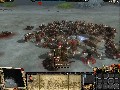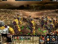 Despite this one setback, the graphics are generally outstanding. The individual units are so well rendered that they almost make you forget you're watching an army of clones battle it out. Each character model is realized with a surprisingly high level of detail, from their battle raiment to the arms they bear. The rising dust and flying blood of a melee are complemented by excellent lighting and hazy fire effects of magic projectiles. Certain area effect missiles will send bodies flying into the air in a graceful ragdoll physics ballet. The overall effect, if you take the time to zoom in for a closer look, is an eye candy extravaganza that points toward the next generation of graphics for real-time strategy titles. As is often the case with these sorts of games though, I tended to spend much of my time zoomed out commanding the large armies from a bird's eye view so the blood spilt for my sadistic viewing pleasure was largely spilt in vain.