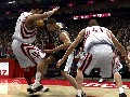 In an attempt to bring players into the game, the free-throw features no meter and instead must be timed by watching the player. Pulling backward on the right analog stick raises the ball, and as it gets closer to the player's head, push it forward to shoot. Of course, the problem is similar to the jump-shot timing: occasionally jerky animation. Physics also make the ball roll around the rim unrealistically during these shots. Visually, there are similarities between the basic idea of shooting free throws in both Live '07 and 2K7, but in one of the few legs up for this franchise, Live '07's feels much better. Even with jerky animations and strange physics, somehow it just feels far better, which matters quite a bit when you're going for immersion.