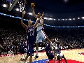 Graphically, some players look better than others, with big stars looking closest to their real-life counterparts. For whatever reason, some players look completely unlike themselves, instead resembling digital doppelgangers of scary impersonations. For instance, Andre Igodoula (who looks ridiculous in both of this year's titles) looks less like a ball player and more like someone who might beg you for some heroin, with the dark circles under his eyes belying his star potential. Tyrone Lue looks as if he should be playing in the WNBA based upon his player model. It's a shame that the graphics meant to bring people into a next-gen game would really hurt its success so badly. The one saving grace is the court design, which looks great again this year. An issue EA has always had is with the crowds, and this year's offering is somewhat better, but not much. They will writhe, cheer and react, but they still mostly look like unrealistic mannequins in the crowd.