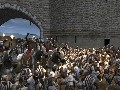 Medieval II: Total War delivers in every aspect, and the graphics are no exception. With sufficient hardware, the game displays some of the most impressive visuals in the strategy genre and truly brings the battles to life. The look is similar to Rome: Total War, but Creative Assembly has improved upon it in several ways. One of the more noticeable differences is how each soldier in a unit is rendered with a random selection of arms, legs, heads, and torsos. This allows for nearly every soldier to have a unique look, as opposed to the mass of clones in previous Total War offerings. Individual crests and faction symbols can be seen on the tunics and shields. The details in the battles are simply amazing: soldiers can be seen swinging swords and blocking attacks with shields, troops will fall over when struck by arrows, and people can be trampled by horses and elephants. The end results produce some of the most awe-inspiring battles that have ever been depicted in a video game.