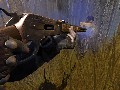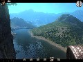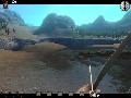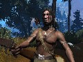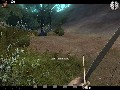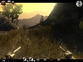 The other level of this build sees you playing Billy (yes, he's a kid, but I'm not sure if he's the Kid), a fugitive on the run from the crazed minister who is somewhat forced to absorb the wisdom of an aged Native American, and it is here where I feel Call of Juarez shines with the brightest potential. The first level has its moments, but really, it's just your standard "all guns blazing" FPS with some cool slow-mo action. This second level is so completely different, it's quite surprising. You're first tasked with hunting some rabbits with bow and arrow, which is significantly different from shooting at a man with a pistol. After this, you need to put out a fire with a bucket and some assistance from a nearby stream. Finally, you're sent to climb a massive stone pillar in the middle of a nearby lake. The old man wants you to get an eagle's feather without killing the bird, so you get nothing more than a whip to get to the top with. This level was extremely interesting and absolutely unlike anything I have ever encountered in this genre before. The whip is a neat tool; not only does it function as a melee weapon, but you can also use it "Indiana Jones" style to wrap around trees and swing across gaps. If the rest of the level design in Call of Juarez is as strong as this one, this game is automatically a must-have.