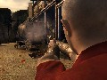 What impresses me about this feature is how it hints at what truly great gunfighter reflexes may have been like – a calm serenity that leads to a type of intuitive precognition before the weapons even see the light of day. If you feel like spicing things up, you can tap the Z key for a quick-fire mode with a single revolver. It's a form of low-tech semi-auto for an era devoid of the Uzi 9-millimeter. You can also pull out your Good Book and quote particularly vengeful passages from the Old Testament, a minor feature that I found quite amusing from a perspective of creating ambience. This mission takes you from the church, to a shootout in the town's main street, to preventing a jail break, and eventually has you facing the level boss in front of a saloon you just set ablaze (you blast everybody who comes running out, naturally). Speaking of fire, the latter part of the mission has oil lamps scattered all over the place which you can pick up, throw at a person or object, and then ignite the fuel. Burn, baby, burn. Not only do the flames look pretty real, but the fire also acts as it might in real life. If something flammable is nearby, it will also catch fire and spread, or you can pick up crates, drop them within close proximity of the fire, and watch them go up in flames.