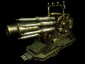 This double-barreled shotgun is extremely effective at close range. It shoots multiple pellets that spread out quickly, so its effectiveness at medium distances is limited, and at long range it is essentially useless. It has a zero blast radius, so you will not incur damage by using it at close range. This weapon reloads relatively slowly, so it is important to shoot accurately and to have room to maneuver after each shot. The Gearmaster carries a medium amount of ammunition. Alt-fire mode shoots both barrels, employing twice as many pellets for twice the damage at close range.