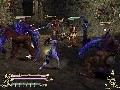 It sometimes almost seems as if there's too much crammed in there, too – so much so that the technology can't keep up. The camera is pretty clunky, so be prepared to fight some battles looking only at your character's feet. The controls on the ground are not particularly responsive, and I died several times because the game didn't detect my button press in time to parry a blow. Draw distances are terrible on foot and in the sky, to the point where you can be shooting fireballs at empty patches of ground and killing hordes of invisible enemies that the game decided not to render. It's especially trying in the air levels, but it's a universal problem. On ground, all graphical detail suffers for the sake of rendering the army hordes. All of the levels are barren and flat-looking, and some of the enemies are extremely polygon-deficient. At least the player characters look pretty good, and the dragon levels are uniformly pretty, although the game does make you fight cubes. It can gussy them up and call them "gargoyle cubes," but they're still cubes, and since the last I checked, this wasn't 1995, so I have to take offense.