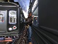 However, the most depressing thing is the Prince of Persia-like climbing element. In theory, it should be the best part of the title – who wouldn't want to go climbing all over a dense urban sprawl; the very idea of it is so viscerally appealing – but in actuality, it's the worst part because the controls simply don't work. See, the sidling system doesn't map the controller direction based on camera angle, so you'll never really know for sure what direction on the analog stick will put your character, Trane, where you want him to go. The balance beam controls make it highly unlikely that you'll be able to just step onto a perpendicular beam without walking right past it five or six times first. And then there are times where it's simply not clear what texture you can climb and what ledges you can hang off of. It makes the whole thing a deeply frustrating chore.