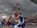 One way to earn easy points is to use the I-Ball system, which basically means throwing the right analog stick in different directions. Each direction is mapped to a trick-move, which could entail putting the ball between your legs, spinning, or deking. The I-Ball scheme has three separate tiers, or levels. Simple moves are used with the right analog stick alone. Second-level moves are used in conjunction with the left analog; push the sticks in opposite or corresponding directions as you move down the court and you'll break out prettier moves. Finally, there are the level-three I-Ball moves, which are used the same way as the second level, but this time with the sprint (i.e. turbo) button held down. These moves are more lavish, but ultimately more rewarding, especially when you have your ankle-breaker meter full.
