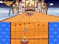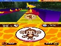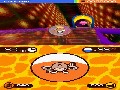 Graphically, Super Monkey Ball: Touch and Roll keeps itself beautiful via careful mixing of 2D and 3D graphics. Your monkey is a sprite, while the ball is three-dimensional and has a sun reflection that not only looks beautiful, but also offers you a potentially valuable way to tell which way you are facing. The levels themselves are three-dimensional with 2D textures, and look just as smooth on the DS as they would on a small screen with one of the console versions. Backgrounds are rendered in the same style, making the 12 available environments beautiful, distinct, and non-obtrusive. The game is easily on par with some early PSP games and is close enough to the console versions as to not hinder gameplay in the least.
