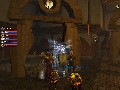 The graphics in this game are good, but not great. What matters most to me personally is that they're serviceable, contain consistent artistic style, and don't lag. On those three counts, I'm happy to report Turbine has done a great job. The model sculpting is fantastic, and the animations are smooth as silk. Textures are a mixed bag of extremely high detail on avatars and building surfaces, with low-resolution corner cutting on things like spider webs and piles of debris. The lighting is decent, with strong relative source use (meaning a torch throws light in all the right directions according to objects around it), although the shadows aren't the most realistic I've ever seen. At least they aren't Lineage 2-bad.
