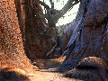 As a third-person point-and-click adventure, Paradise has simple, clear-cut controls. A metallic ball serves as the cursor, and it sprouts an arrow in the direction of the path you can follow; double-click in that direction if you want Ann to run instead of walk. The cursor sprouts a magnifying glass if you can take a closer look at an item, spokes protrude if you can use or interact with an object, and pinchers appear if you can pick up the item. The inventory menu comes up with a simple right-click, and clicking on an item will activate it for use with the environment or an NPC. (If you cannot use the item on a particular person or place, the cursor is supposed to indicate this, presumably with a different icon, but this feature was not present in the preview build.) If you select an item and drag it around in the inventory menu, you can combine it with other objects. Additionally, the cursor changes into a trumpet if you can speak to an NPC, and dialog keywords will appear in a gray box in the upper left-hand corner of the screen.