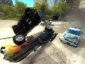 Fortunately, new levels of destructibility have been added to the cars, so if you're doing really poorly, you can at least enjoy the spectacle of your car's parts flying off and the engine catching fire as you bash into the landscape. The "smash points" mechanic is also back, so you can rack up extra money both by getting your car trashed and trashing the landscape. The variety of breakable objects in the game has been dramatically increased, while there are more small objects that don't penalize your speed much for hitting them. So in FlatOut 2, it's more possible to rack up lots of Smash Points while still winning races.