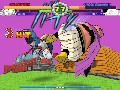The action takes place throughout seven expansive stages designed to accommodate combat on the ground or while flying in the air. The combat sequences heavily emphasize use of projectiles in setting up and breaking combos, but the real damage is done by rushing down your opponent and battering him with hand-to-hand moves. Developers assured us the game would run at 60 FPS, with all combos and moves cancelable into their 12th frame of animation. This indicates Super DBZ is a title that will definitely require sharp reflexes for high-level play, while combo canceling will be essential. It won't be a game that favors blind rushes, though, because every successful combo break can be used as the starting point of a counter-combo. Players who prefer to take a defensive stance with their playing certainly can, although we guess outright turtling will be punishable by use of projectile-triggered combos and throws.