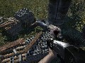 Later on in the level, we stood on a cliff that overlooked a construction area down below. Thanks to the game's physics engine, we could use flammable containers to send debris raining down onto the zombies below, making things a little easier for us. Of course, wild wolves that suddenly jumped onto the path from the forest on our left cut short our little pleasure cruise. At one point, we walked onto a bridge, when suddenly zombies began pouring onto it from both sides, giving a very enclosed feeling to the action. More than once, we had to use objects to our advantage, such as stacking boxes to reach a broken ladder while dispatching the occasional zombie that would run towards us from the undergrowth. Finally, at the end of the level, we had to open a door leading into a tunnel while occasionally stopping to defend ourselves against zombies.