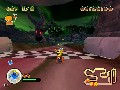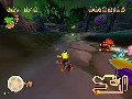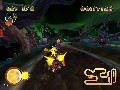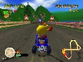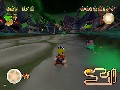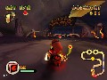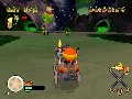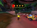 Pac-Man World Rally also has a battle mode, which features various fruit-based guns, explosives, and melee weapons such as the banana rammer, grape grenade, blueberry missile, cherry bomb, and strawberry guided missile. Players will pick up their favorite weapons and drive around trying to take each other out, until someone reaches a preset "frag" count. It looked like up to eight karts could be going at it at once, with the computer controlling the extras.