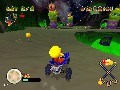 Additionally, you can steer during jumps in order to pick up items or avoid obstacles in mid-air. Picking up fruit will unlock shortcuts, which will shave a few seconds off of your lap time. You can also pac away on pellets available around the track, and once you've chomped enough of them to fill up the meter, you change into a Pac-Mobile. This temporarily turns everyone else into blue ghosts that you can gobble up.