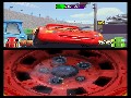 As soon as these games are completed, the first portion of the racing game, "Piston Cup," becomes available. This is perhaps where Cars is at its weakest. Since cutesy racing games are an absolute staple of Nintendo history, it strikes an odd chord that a game ostensibly about a racecar isn't more focused on exactly that task. Instead, "Piston Cup" is less like an actual racing game and more like another mini-game. Zooming around a short track, red racer Lightning squares off against rival Chick Hicks. Instead of actually controlling the action of the race, however, the player merely uses the control pad to dodge oncoming cars and attempt to ram Chick into them. While there is an acceleration function, it bears very little use, as it is completely impossible to pass Chick for more than a few moments. Every two laps, the player is subjected to yet another mini, a quick screen-tapping ordeal in which lug nuts are popped off and Lightning's tires are changed. "Piston Cup," which could have been the game's strongest portion, seems to be little more than a taped-on afterthought. Because of what it could have (read: should have) been, this particular mini comes off as more of a detriment than an addition.