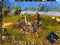 This preview build that I have to noodle around in doesn't include any of Paraworld's pre-rendered cut scenes, which means that there are some pretty big holes in what I know of the storyline. From what I can gather, it has something to do with a guy named Anthony Cole, who, for reasons unknown, finds himself a stranger in a very strange land. His struggle to sort out why he's there, and how to get away, forms the backbone of the game's story. I think. In any case, Paraworld takes place in a "parallel world" (get it?) that never got past the Paleozoic or Mesozoic eras that our modern reality transcended when it shifted into the Cenozoic. As a result, warfare is still conducted using hand-to-hand instruments, with additional help from giant creatures such as velociraptors, huge elk, smilodons, and mammoths.