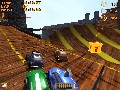 Mad Tracks supports three play modes, one of which is required to unlock all the maps you can then re-play online, via LAN, or even head-to-head on the same computer. While this looks on the surface like a great effort to cover all bases, it does have its drawbacks. For starters, there is no server browser as such. If you wish to play online, you must select a map you want to play and then sit in the “waiting room” for an indeterminate amount of time until someone else happens to connect to that same map. Considering how many different levels there are in total, you can see how you might be waiting a long, long time until another person joins you.