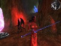 The graphics are, so far, gorgeous. The character models are intricately detailed, and the colors are vibrant and alluring. While there are certain animations that seem to have missing frames, those are few and far between, and will most certainly be repaired by ship date. The NPC models are also very nicely crafted, and the enemies are just shy of perfect. Interestingly enough, MK:A is one of the very few games so far in which the "glow" effect actually seems to work, largely because of the fantastic nature of the settings. The jungles are lush and flowing, with reflective streams and thick shadows. The desert setting of the Necropolis is dark and tan, lovingly molded and carefully mapped.