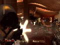 The shootouts themselves are spectacular. Usually set inside a casino or outside on a Las Vegas street, the game provides a real action-movie feel (think "Heat") and allows you to tear up the environment in much the same way as was possible in F.E.A.R.. In contrast to that game, however, in which you were usually just kicking up dust and shreds of paper, there seems to be a lot more to break in Vegas. Glass decorations shatter. Coin machines break open and their contents spill to the floor. The door of a car being used for cover will fall off if hit with too many bullets.
