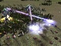 Each race has three experimental units that can be built as well. The main differences between normal units and experimental units are that the latter are constructed by engineer builders and not produced at a building. Also, the experimental units are generally "uber," meaning they take massive amounts of resources and time to create, but they can literally turn the game around or at least even the odds. From nuclear missiles to giant walkers that one-hit almost anything to massive artillery cannons that shoot half way across the map, these late-game techs can certainly produce massive effects. Supreme Commander doesn't seem to be a total race to the ultimate techs, as there are some defenses against them. Protection against nuclear missiles can be constructed, and shields to defend against artillery can be built.
