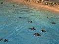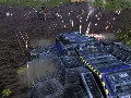 The controls deviate very little from the standard RTS paradigm. Experienced RTS players will have no problem learning how to play, and will probably be used to the interface after just a few games. One thing that is very unique about the interface in Supreme Commander is how the map system works. The mini-map has been eliminated and replaced by a strategic view. You can zoom out of the normal view all the way to a strategic view where you can see the entire map, and icons represent units and buildings. You can still control units and issue commands on the strategic view, and it is possible to play the entire game from this view. Supreme Commander also has an option to split the screen into separate views, so you can be looking at two different parts of the map at the same time and be able to issue commands in either view. The developers have even set it up so you can put the second view on a separate monitor, for those players with dual screens.