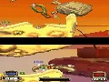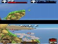 Graphically, the game is bright, colorful and has a much more refined veneer than the previous Open Warfare offering. Team 17 has managed to create a game which greatly resembles the PC version of Armageddon, while feeling like a native DS title. The rendering on the weapons and the worms themselves have made the transition to 3D look all too easy compared to the slapdash job of the previous title. The only downside to the graphics is that the DS' small screen size doesn't allow for more close-up views of the action, so some of the hilarious motions and animations may go unnoticed. The incorporation of both the top and bottom screens in depicting the action, however, gives a much better sense of scale during combat, since more of the gameplay can be observed.