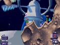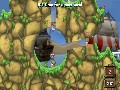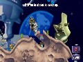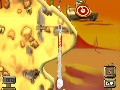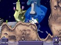 Playing a typical game of Worms 2 is fairly straightforward. War is waged in an orderly fashion, with each worm taking a turn within an allotted amount of time to fire a weapon, use a tool or to crawl to a new location. The first team to destroy all members of the other team wins. A countdown timer is present during each worm's turn to alert the player about the time remaining for action. One of the few complaints about Worms is that the timers can often negatively affect the rhythm of the game. It was often frustrating to attempt to keep up — or down, as it were — with the pace of the game. I often found myself button-tapping to advance the game, only to have one of my button presses buffered so that I performed an unintentional action during the next turn.