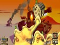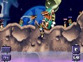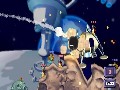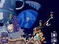 Cartoon styling and cute, comical animations have been a trademark feature of the Worms franchise, and the tradition continues in Worms 2. Each map includes an animated backdrop that is proportioned to constantly remind you of how small you are in the game world. The gameplay and design of the maps are well suited to the wide-screen design of the PSP. You'll still need to zoom out to see the entire playfield, although there is considerably less in-game side-scrolling required with the PSP display. The cartoon graphics appear to be softened slightly, which looks nice and adds a slight 3D quality to an otherwise strictly 2D game.