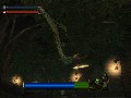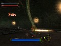 In-game cut scenes, moving from one part of the map to another, are completely obvious and lack creativity. It's bad enough that doors are not destroyed or even cracked when I was told to send Valthorian's right arm into them, but all they did was slowly creep open. (The destruction of the secret wall in the third level must've eaten up the entire budget). What I found completely unacceptable was Dal's face — and the face of every other human in Dragon Blade. For a graphically superior system such as the Wii, the thing that should tell me of a person's emotions and reactions should not be his badly coded body language! There are no facial expressions at all in this title. None. The words may carry the emotional context, but without any sort of physical evidence or voice-acting, all I see is a blank face.