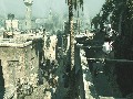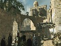 The world of Assassin's Creed certainly looks fantastic. The cities are modeled in meticulous detail and actually feel large and crowded, just like real cities. There is one notable problem: repetition. Much like other sandbox titles, Assassin's Creed suffers from seeing the same face over and over again. This same problem occurs in the architecture, too. While it makes sense to see similar architecture in cities, it's certainly not difficult to notice reused buildings, particularly in the case of the viewpoints. These are minor gripes at best, and standing on the highest building on Jerusalem while looking down at the thriving city can be a jaw-dropping experience. Character models are more of a mixed bag. While most characters look fairly good at a distance, the few times that the game zooms in tend to take away the sparkle. There's a reason most of the characters in the game are hooded, as the hair graphics are simply awful, and any character that isn't specifically designed to appear in a cut scene looks pretty hideous when viewed up close.