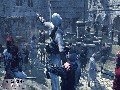 While the rest of Assassin's Creed is polished to a mirror shine, the combat system comes very close to ruining the game. At first, the problem is that the controls are awkward and uncomfortable. When you fight an enemy, it feels less like a swordfight and more like you're wildly swinging a sword at him. Once you complete an early mission and get the counter-kill ability, though, the problem jumps to the opposite extreme. The counter-kill ability allows Altair to instantly dispatch foes that are attacking him by "countering" as they attack by holding down the right trigger and pressing X. This isn't an unfamiliar concept; "just defends" and the like have been in video games for years. The problem here is that there is no punishment for pressing the counter button early. Hold RT and pound the X button, and you'll almost certainly dispatch the enemy, turning combat into a joke. This may seem like a minor problem until you remember that Assassin's Creed is built on having to avoid, not slaughter, these enemies. Once you get counter-kills, there is almost no reason to take advantage of the many unique and interesting ways for Altair to escape from his foes, when you can just take down all of the guards and be on your merry way, which is both faster and easier than trying to outrun them.