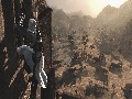 One part of Assassin's Creed that really deserves extreme praise is the climbing engine. There has never been a video game that allows you to ascend vertically in such a natural and understandable way. Altair will pull himself up by loose rocks, hops over to hang off the edge of a grated window, and then reaches up to grab an overhanging ledge, smoothly, easily and naturally. The assassin can climb places where normal people would not think to climb, like grated windows or overhanging ledges. This may seem odd to point out, but it's so rare for video games to do that. Usually there are giant "climb here" walls or "swing here" sections, even in classic titles like Prince of Persia: The Sands of Time, but the cities in Assassin's Creed rarely feel like that. There are, admittedly, a few places where realism gives way to video game logic, but they're mercifully few and rarely interrupt the flow of Altair's exploration.