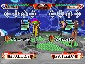 If you've never played Dance Dance Revolution (or the similar, Korean-developed Pump It Up or the aforementioned In The Groove), the basic mechanics are kind of similar to those of Guitar Hero. Arrows scroll toward a line at the top of the screen, matched to four giant arrows on the controller pad on which you're standing — or you can just be lazy and use the face buttons on your controller, but where's the fun in that? Just step on the matching arrow on the controller pad when the moving arrow lines up with the top line, and you score a point. Repeat anywhere from 50 to 500 times in a minute and a half, and you have one stage of the game.