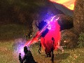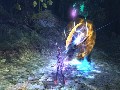 Beyond making good, if basic, use of the SixAxis controller, Folklore takes full advantage of PlayStation 3's power, creating some truly impressive visuals on technical merits. Art direction, however, could have been better. The Doolin locale is uniformly gloomy and gray, yet in direct contradiction to its name, the Netherworld sports some levels of lush forests awash in the garish colors of psychedelia; still, in places, the Netherworld lives up to its overt intimation of darkness via stark, decimated battlefields and the like. In art style, Folklore presents an often jarring lack of consistency between levels. Character costumes don't fare much better: Although consistent throughout the game, they are surely going for a particular look, and they've missed; Keats looks a bit like he dressed at random from his wardrobe, selecting his discordant ensemble in the dark.