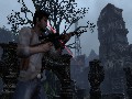 The puzzle-esque pathfinding in Uncharted requires a lot of climbing sheer walls, hanging from crumbling ledges, swinging off vines and hurdling crevices; these things demand good self-managing cameras and immediately responsive controls to avoid frustrating the player. The title excels in both areas: I was not once sent plunging to my death by an unregistered button push, and the camera control, automatic and manual, is stellar throughout the game. Playing at a normal difficulty setting yields an experience that at first seems almost too easy, but somewhat more than one-third of the way through, enemies attack not only from the front and above but also charge in numbers from behind. Then it's not so easy.