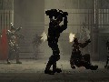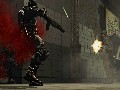 Shortly after popping into 1939 and into the middle of a massive city-wide battle, the beta suit sustains damage to its temporal displacement engine and loses the ability to actually puncture a full wormhole through space-time. What it does not lose is its ability to slow, stop or minutely reverse time. In gameplay terms, this is the good stuff. This is what makes TimeShift such a fun and ultra-violent shooter. You're bombing around a past that never was, a distinctly advanced version of Europe in the 1930s, with the capacity to control any given firefight. It's heady stuff, slowing time to the point where you can circle-strafe around an enemy, unload a shotgun point-blank into his chest, back and head, then return to real time to watch the body bounce around and/or explode.