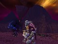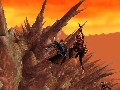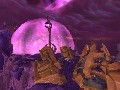 The first zone you'll encounter is the Hellfire Peninsula, a surreal landscape of blood-red stone, sickly phantasmal clouds in a perpetual night's sky, and wave after wave of demonic invasion force. It seems those pesky Burning Legion fellas are up to their old tricks again, and this time the Horde and the Alliance are taking the battle to the demons rather than just waiting for hostilities to spill over into Azeroth. The Horde outpost of Thrallmar is the starting point for us "bad guys," quickly leading to two other points that combined offer a swath of new quest options. Most of these are menial quota tasks; "Kill X demons, kill Y of those other demons, and while you're at it, grab Z of these random items off the ground." Nothing totally stunning, but the amount of gold and experience you're rewarded with is satisfying.