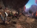 MotorStorm is set in Monument Valley, a real-life geological area on the borders of Utah and Arizona. Evolution Studios lovingly recreated much of the familiar imagery from the area, creating eight race tracks that encompass a wide range of experiences. Rain God Mesa (a.k.a. the demo track) is set high up in the Arizona sky, with the majority of the course lacking any kind of border or physical restraint. Take a turn too quickly and you’ll be tumbling for quite some time – well, until you respawn back to safety.