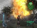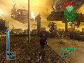 The main character's torso is rendered separately from his legs, to cut corners when it comes to rendering the game's different weapon-launching animations, and this means that running in one direction while firing in another makes your character resemble nothing so much as a G.I. Joe action figure twisting at the midsection. Physics are inconsistently implemented, resulting in silliness like being able to level a building with a single shot from a rocket launcher ... but not being able to damage trees or cars at all with a shot from the same weapon. No, instead, you'll simply cause their completely unaltered damage models to fly around the screen a bit. Hilariously, fences work the same way. Ankle-high barricades can be deadly, since jumping and dodging controls are awkward, and occasionally the game simply freezes up when there's too much happening on-screen at once.